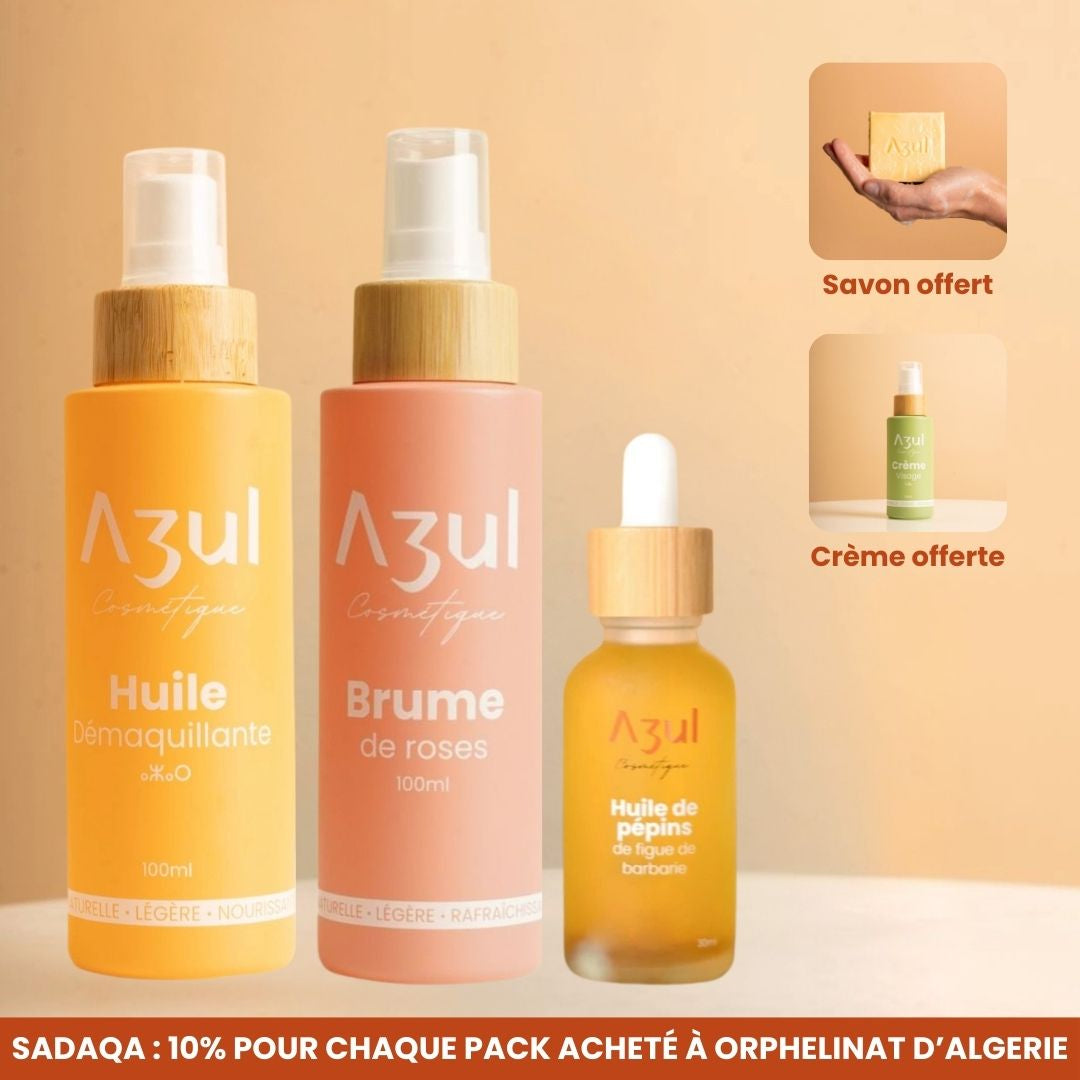 Ne laissez pas la fatigue et le jeûne ternir votre peau. Pendant le mois de Ramadan, le manque d'eau et de sommeil accélère la déshydratation et le vieillissement cutané. Conçu pour préserver votre éclat, ce rituel visage complet 100 % naturel réunit le meilleur des trésors d'Algérie pour nettoyer, hydrater et repulper votre peau en profondeur.