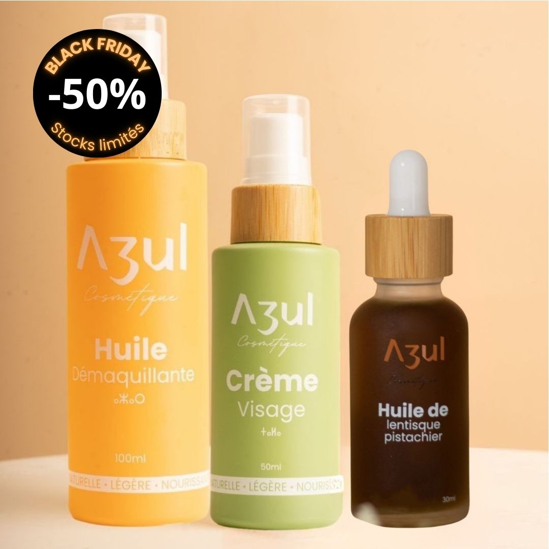 - Huile démaquillante Azar : appliquez sur peau sèche, massez, émulsionnez avec un peu d’eau, puis rincez.